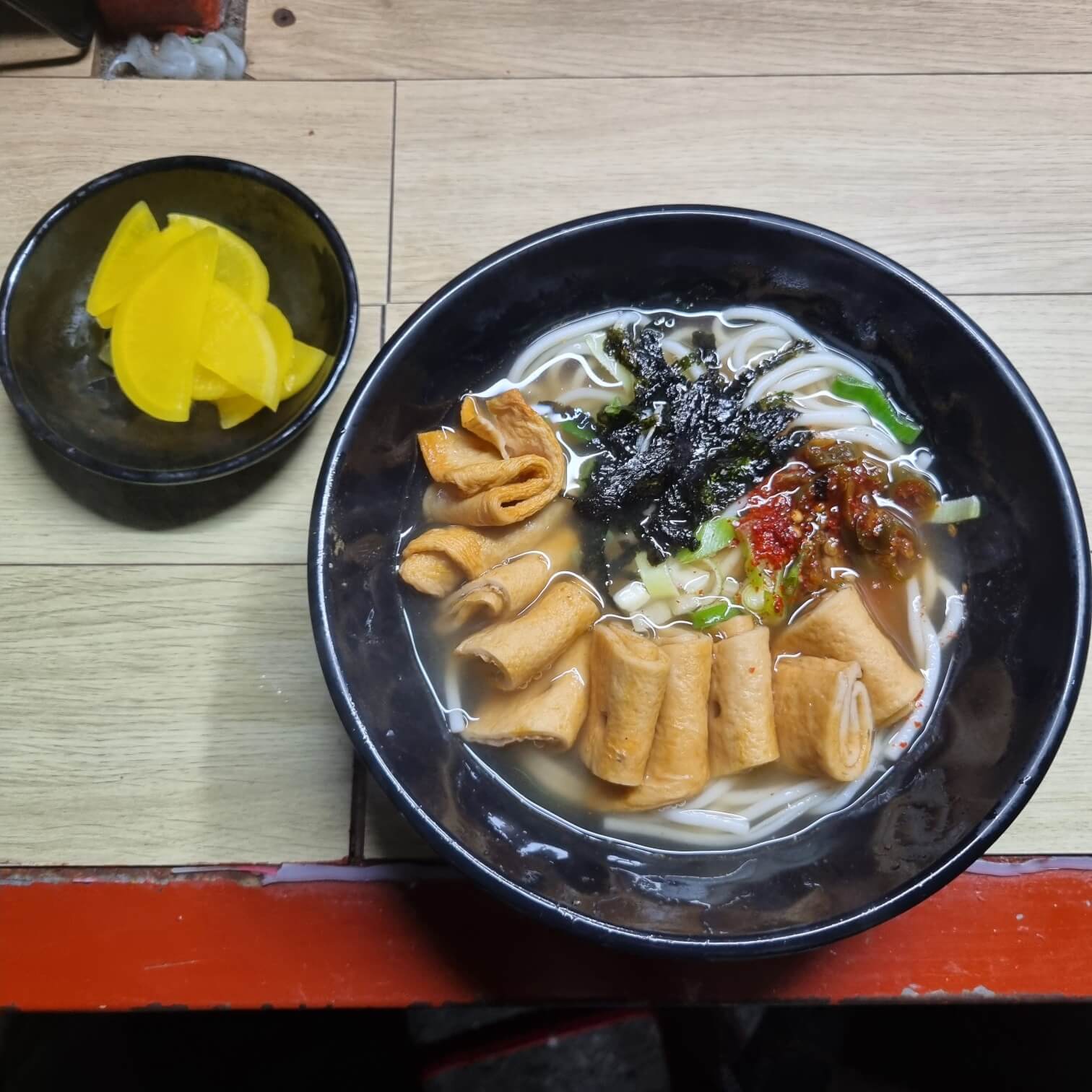 단일 메뉴 가락국수(5,000원)이다. 길거리에서 파는 어묵보다도 큼직하고 부드러운 어묵 꼬치 하나가 함께 들어간다. 빨간 양념장은 생각 외로 무척이나 맵다. 매운 것을 아예 못 먹는다면 주문 시 빼달라고 요청하자. 우동이라고 하기엔 가락국수면. 일본 우동면보다 두께가 살짝 얇고 좀 더 잘 끊기며 포만감은 비슷하다. 장점으로는 일본 우동면보다도 늦게 불어 더욱 일정한 면발을 느낄 수 있다 다른 메뉴는 있는 것처럼 붙여놓고 물어보면 없단다. 시간 때문인지 아님 이제 안 하는 건지는 모르겠다.