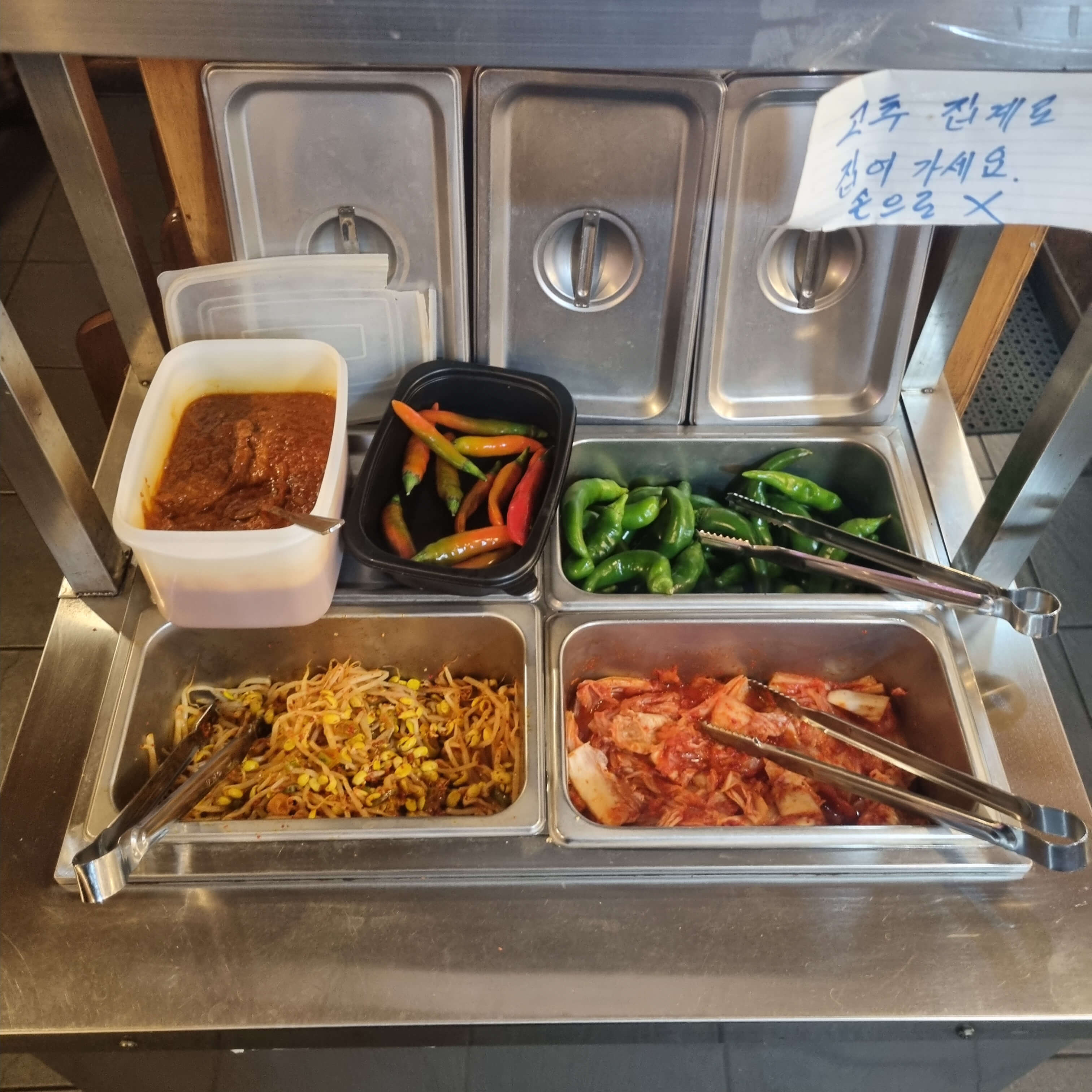 이렇게 셀프바도 운영하고 있어서 고추나 쌈장을 원하는 대로 가져갈 수 있다. 혼밥러들에게는 더 편한 시스템~ 근데 사실 밑반찬이 뭐 별거 없긴 하다. 고추만 있음 됐지 뭐~