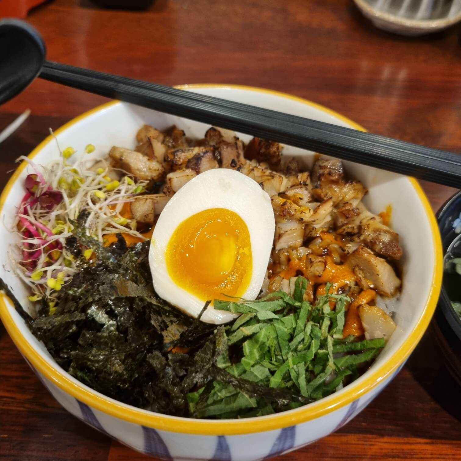 라멘의 국물과 면도 중요하지만 여기 이 차슈를 지목해 주세요. 두께도 두툼하기까지 한데 어느 다른 식당에서 판매하는 수육과 보쌈보다도 더욱 부드러우며 동파육과 족발들 보다도 깊은 맛이 나는 이 차슈를 지목해 주셔야 한단 말입니다! 아니 어쩜 이렇게 맛있을 수 있죠??? 차슈 비빔밥은 더 설명이 필요할까요? 그런 레, 전, 드 차슈를 사용했는데 아직도 설명이 필요한가요? 얼른 와서 드셔보세요!