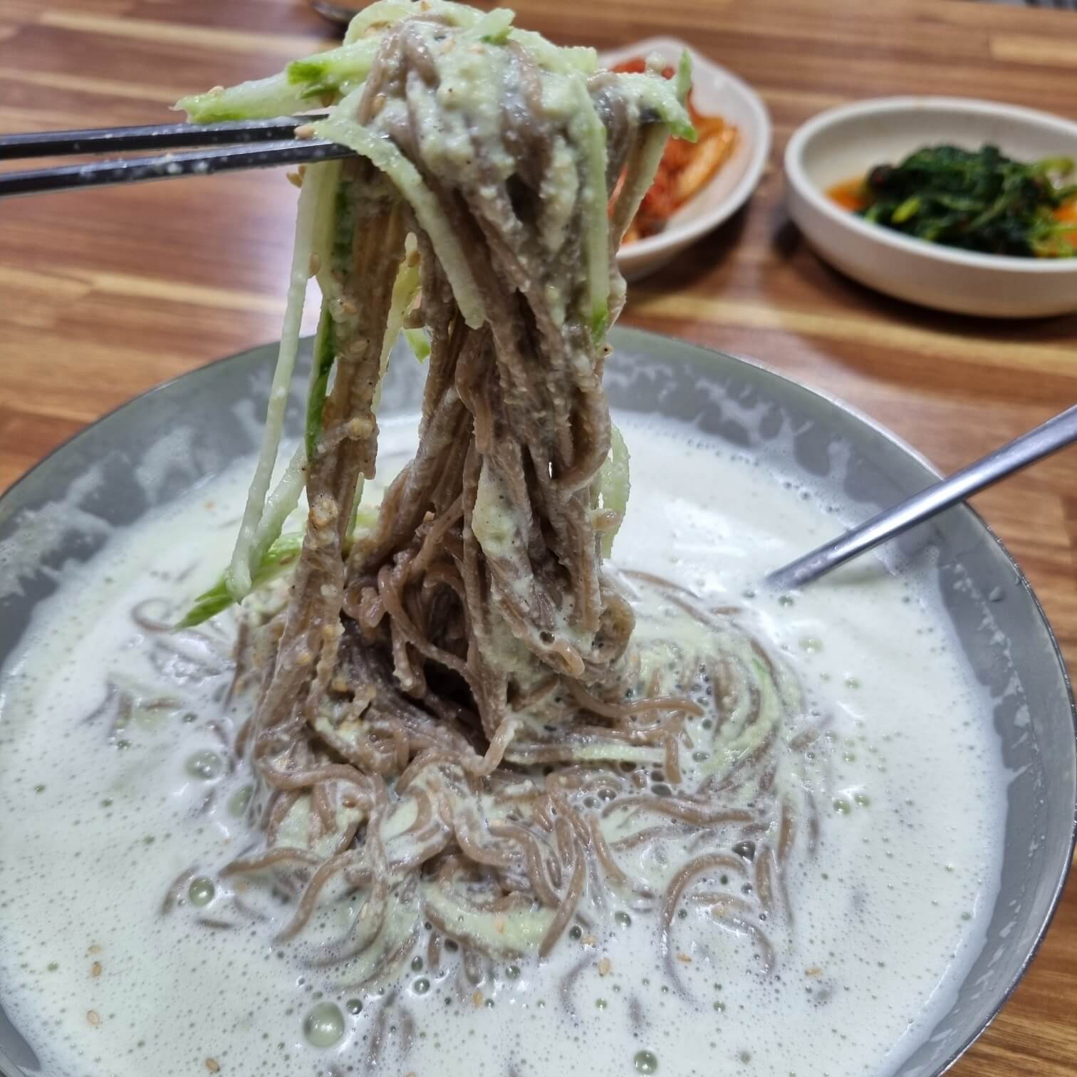 - 메밀면과 콩국수의 조화는 새로웠고 생각보다 잘 어울림