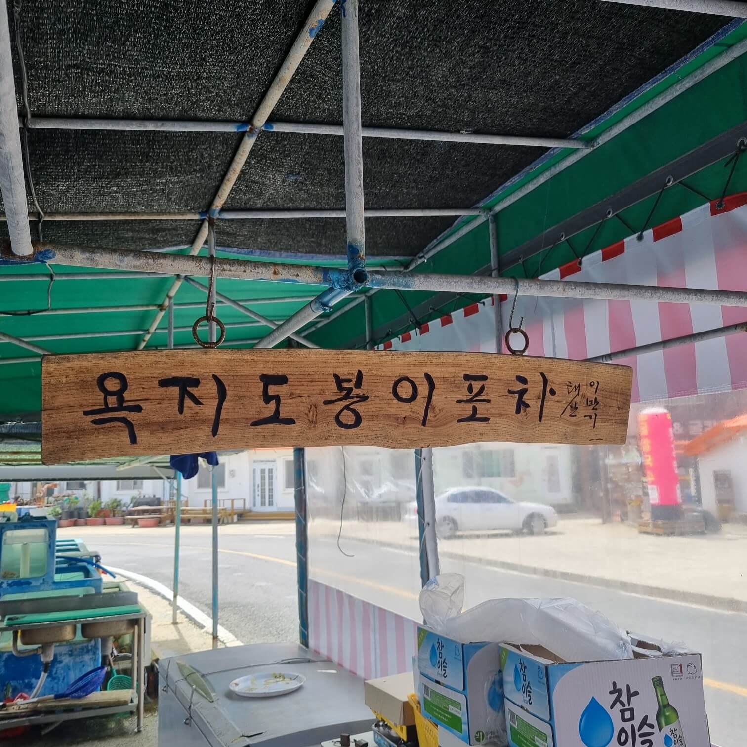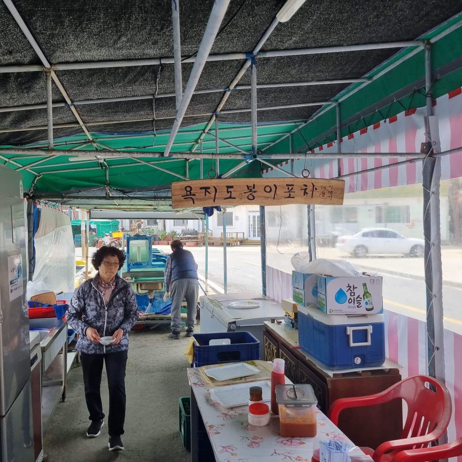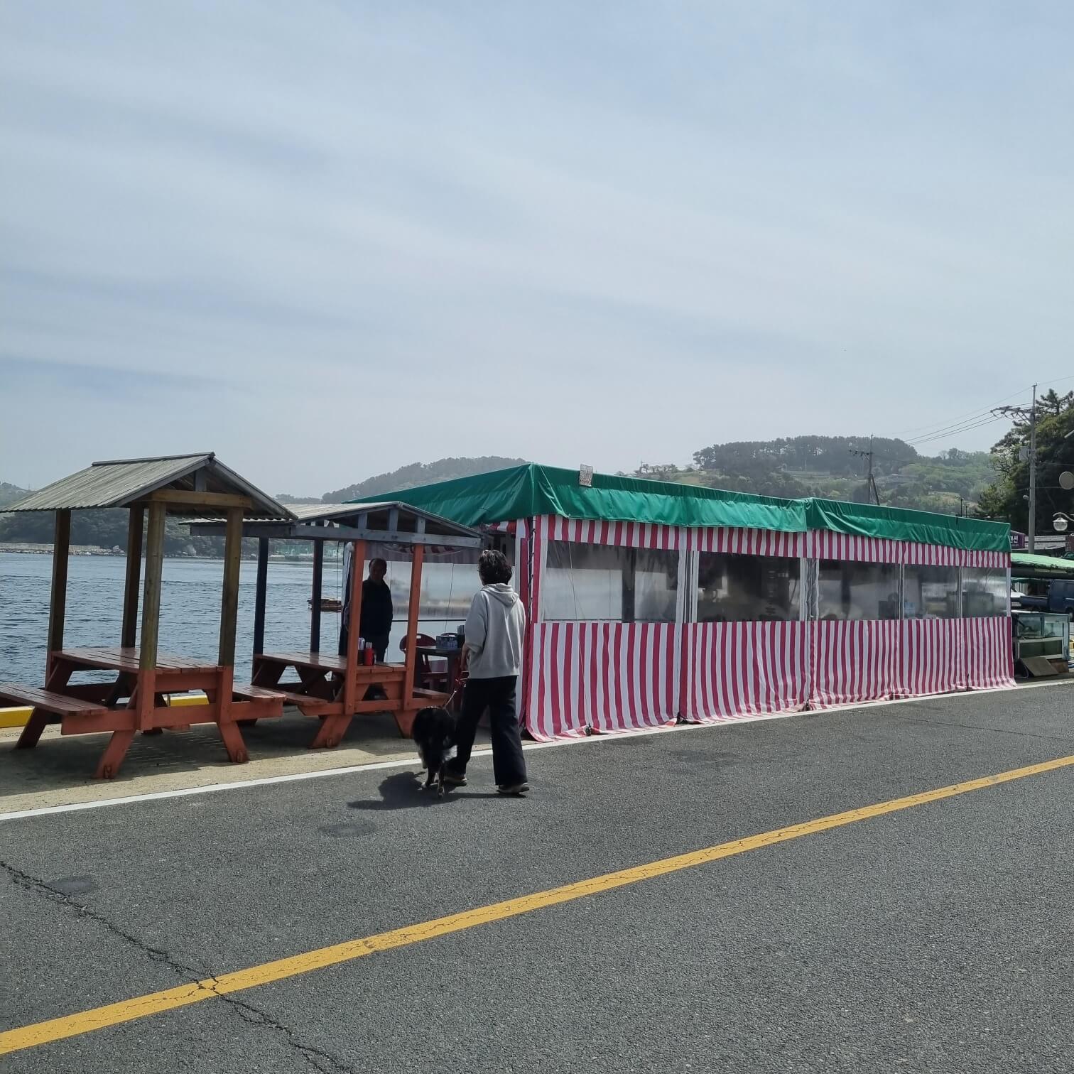 그렇게 욕지도를 크게 한 바퀴를 돌고 나서 알았다. 구석구석 식당이 있을 줄 알았는데.. 없던 것이다. 그래서 다시 부랴부랴 시내로 가던 도중 사진에 체크해 놓은 포인트를 발견, 그곳에 아주 좋은 노상식당을 찾은 것이다!.