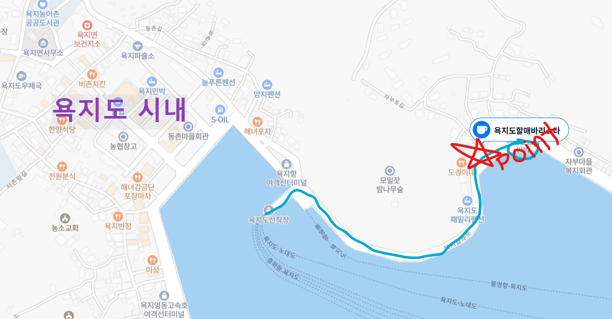 - 주소 : 경상남도 통영시 욕지면 동향리 572-31 (할매바리스타 찍으면 편함)