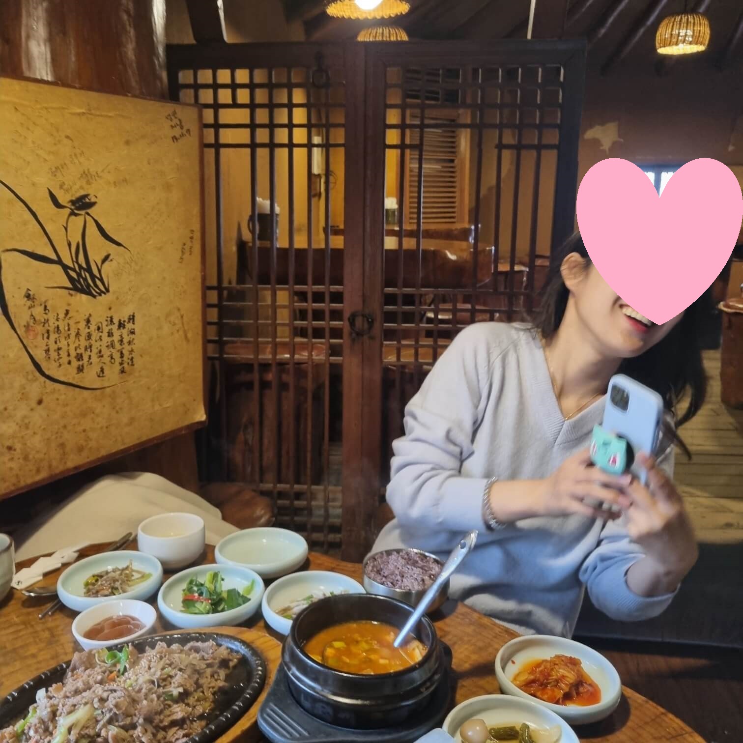 우와..... 다시 봐도 또 먹고 싶어 져요. 반찬 하나하나에 신경 쓴 게 느껴지고 반찬도 리필이 가능했어요! 이런 한정식집에서 리필 안 되는 경우가 간혹 있더라고요 ㅜㅠㅠ  전체적으로 간은 삼삼하니 좋았고요, 여자친구는 특히 된장찌개와 시금치무침이 맛있다고 혼자 다 먹더라고요 ㅋㅋㅋㅋㅋ