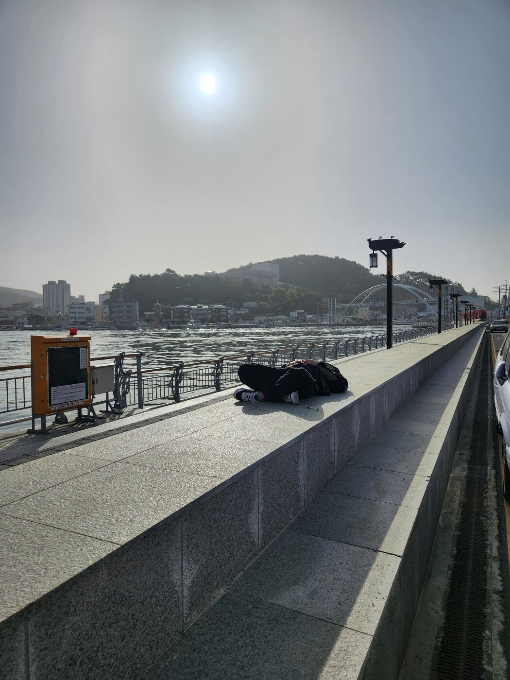 해가 참 따듯한 어느 4월 날. 해 뜨는 거 보겠다고 통영까지 열심히 달려왔다. 통영에 도착한 시간은 04시경,, 일출은 2시간이 남았다. 배가 고프지만 마땅히 뭐가 먹고 싶다기보다 너무 졸렸다. 그래서 차를 주차장에 잠깐 새워두고서는 차 안에서 잠이 들었다. 정말 잠깐 잠이 들었지만 밀려드는 피로감에 내 눈은 정확히 3시간 뒤 해가 쨍쨍한 오전으로 나를 데리고 갔다. 눈을 뜨자마자 든 생각은 "일출을 못 봤네" 보다 "배고프다"였다. 전날 밤에 대전에서 먹은 가락국수 한 접시가 그날 식사의 전부이기에 허기짐을 달래줄 무엇인가가 필요했다.